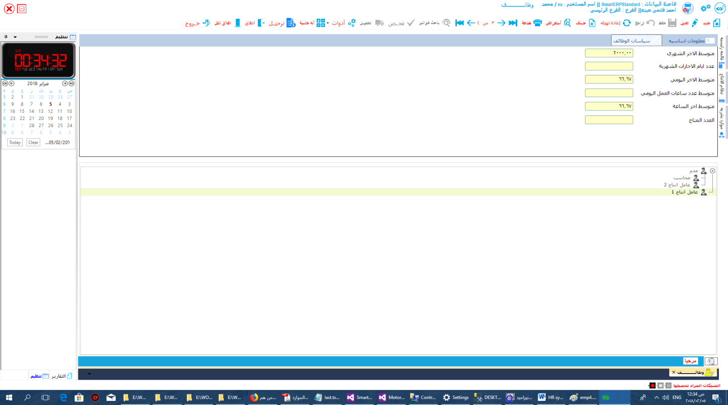 - كما يحتوي النظام علي شاشة خاصة بالأجور و المرتبات تستطيع من خلالها تحديد اجازات العمل الرسمية مع وجود ملف خاص بفردات المرتب