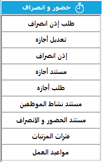 - كما يوجد شاشة خاصة بالحضور و الانصراف تستطيع من خلالها تحديد مواعيد العمل علي جميع مستويات الهيكل الاداري مع امكانية عمل جدول خاص بالمواعيد سواء يومي او اسبوعي او شهري