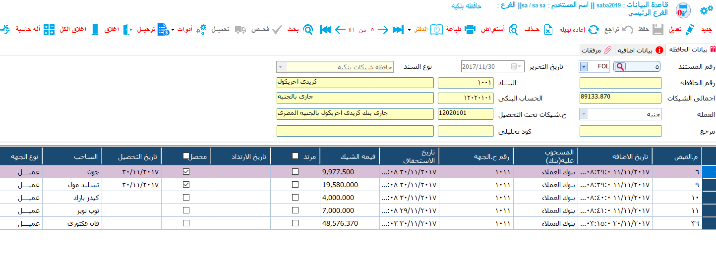 - عمل تقارير ب (الشيكات الواجبة التحصيل و الشيكات المحصلة و الشيكات تحت التحصيل)