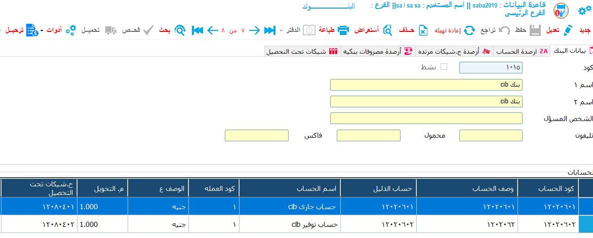 - شاشة خاصة بتعريف البنوك