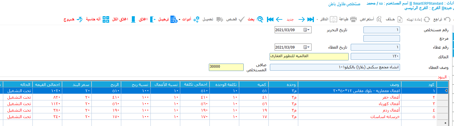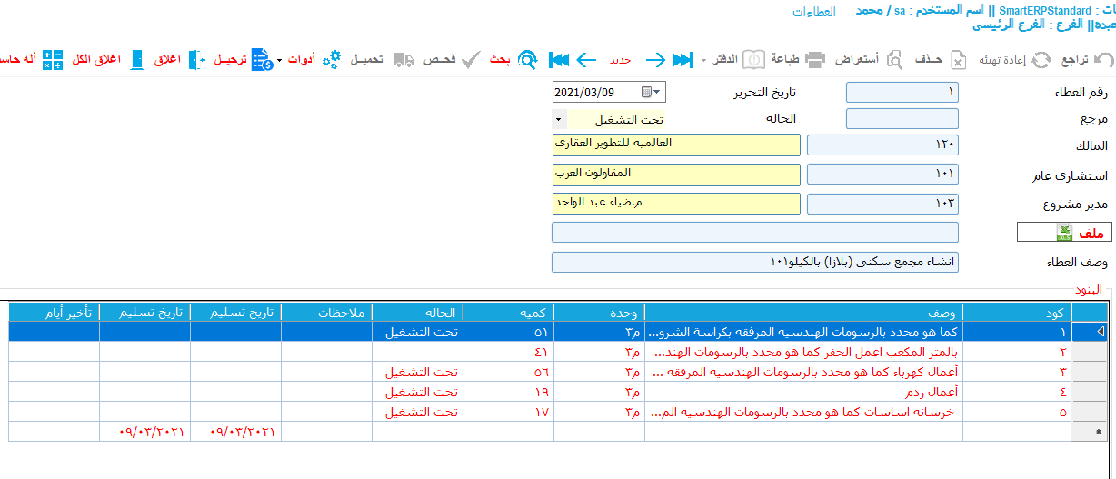 يقدم نظام سمارت سيستم متكامل لادارة نشاط المقاولات حيث يساعدك في :-